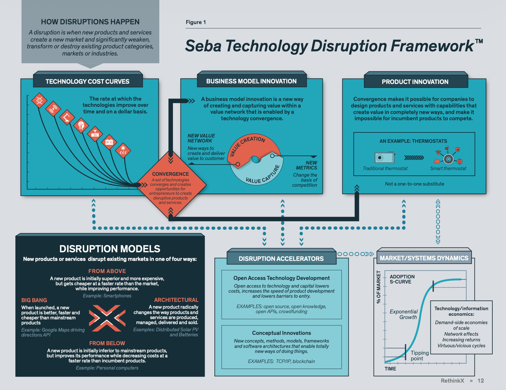 And from a RethinkX Report (Seba and Arbib 2017), which used a trademarked “Disruption Framework,” essentially a proprietary term for extrapolating two lines on a graph, to predict falling technology costs (Wright’s Law) and swift adoption of Transport-as-a-Service.